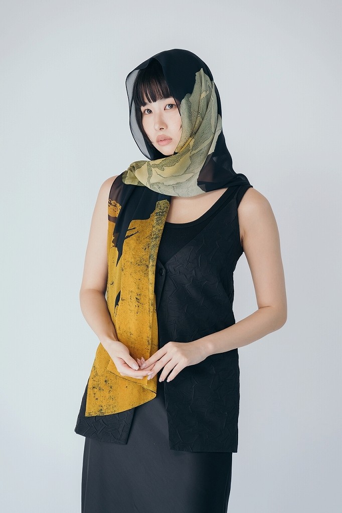 プロデューサーのSuggieが素材やデザインに徹底的にこだわって企画した、OLDGEAR ZIPANG ART株式会社製の【絹のスカーフ】です。