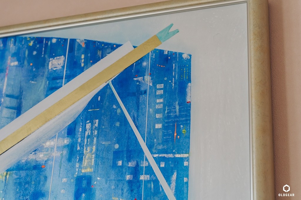 今回のリノベ芸術建築作品「静寂の音色」は、日本画「Swim The Night」から伝わってくる静けさとピアノの音色が共鳴し合い、室内に深い「静寂の空間」を創り出しています。また同時に、窓の外に広がる都会の夜景へと想いが誘われていくようです。