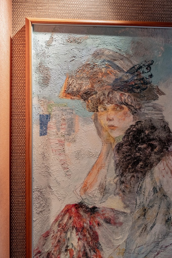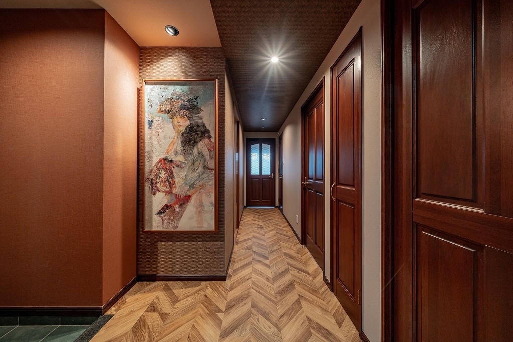 その上で彼女は、日本画家・中野貴文先生の日本画 「anemos」 をモチーフに、造作・デザインを行いました。