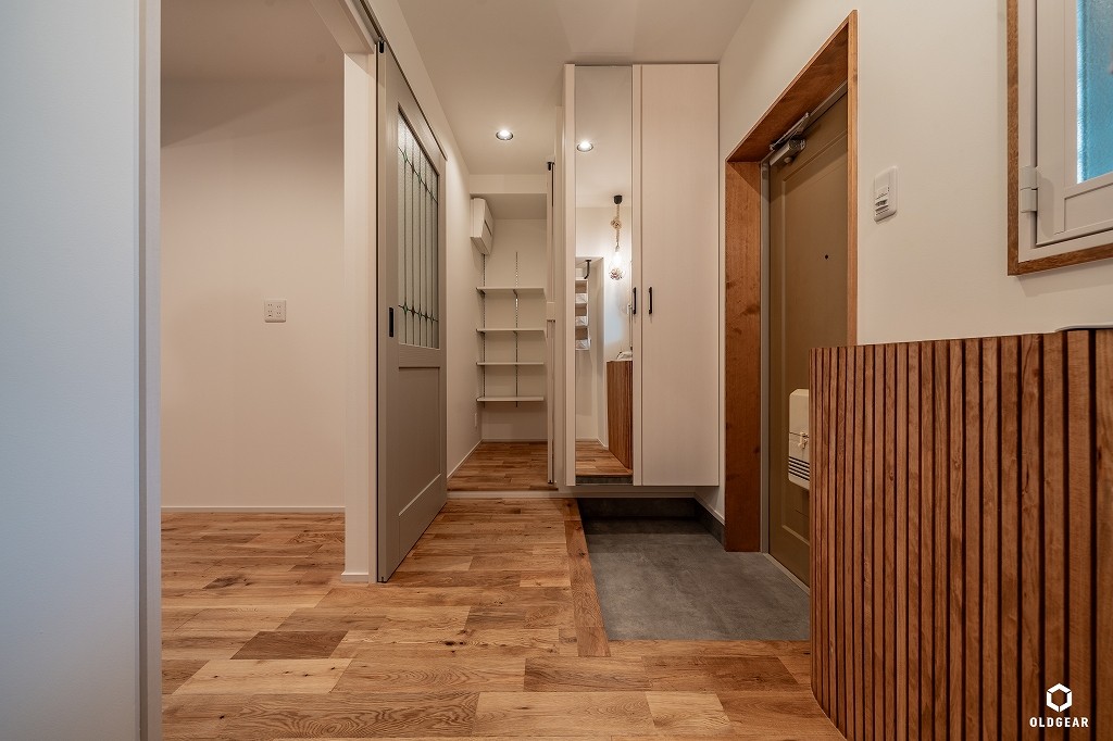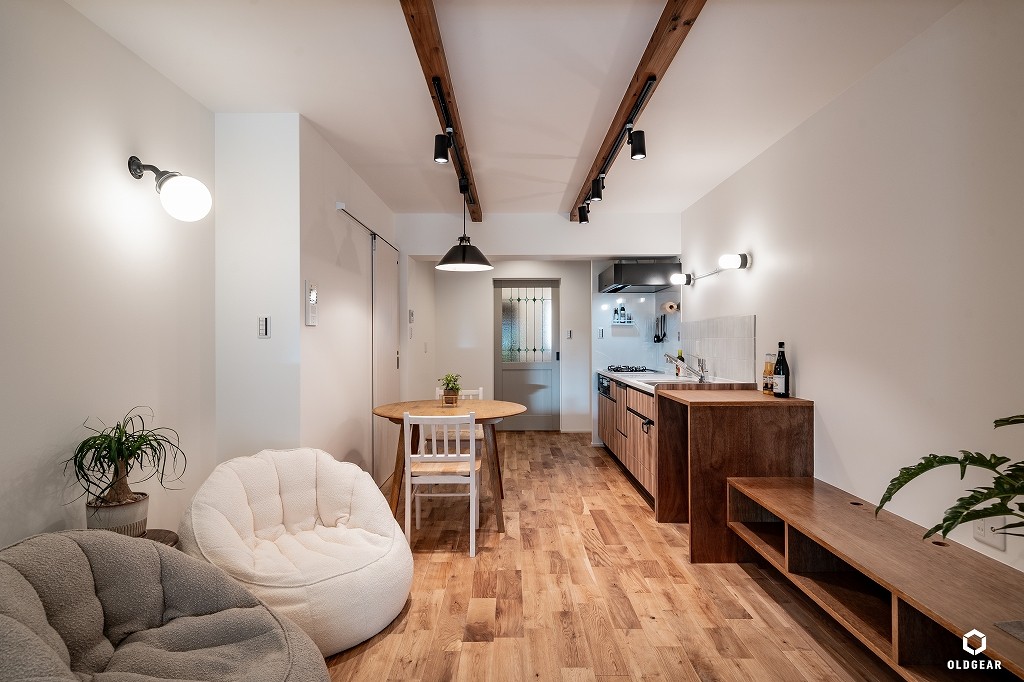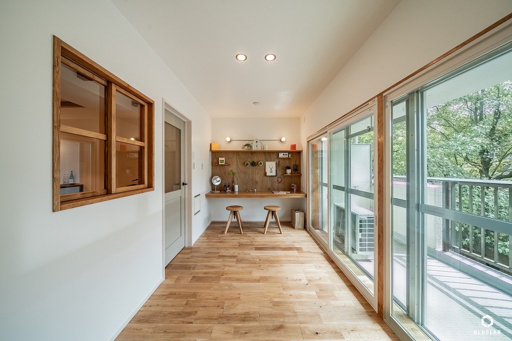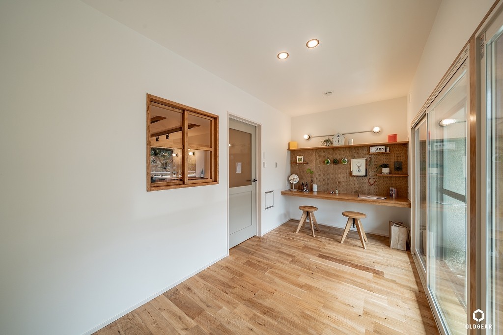 【断熱性能向上】全窓インプラスLow-Eグリーン二重窓・断熱材24K追加・システムキッチン(食洗機・浄水器付・人大・タイル・マグネットパネル)・ユニットバス(1坪サイズ、浴室乾燥暖房機付)・洗面化粧台・トイレ(温水洗浄機付)・壁紙・無垢床(オーク)・LEDダウンライト・建具・部屋窓・有孔ボード+デスク・造作TVボード・給水給湯管更新など