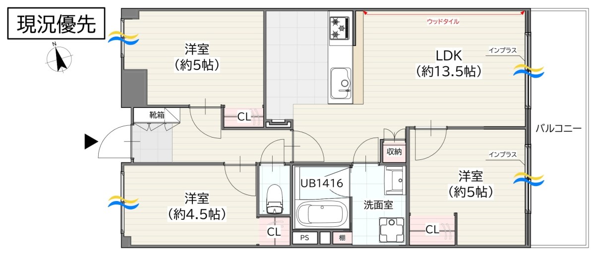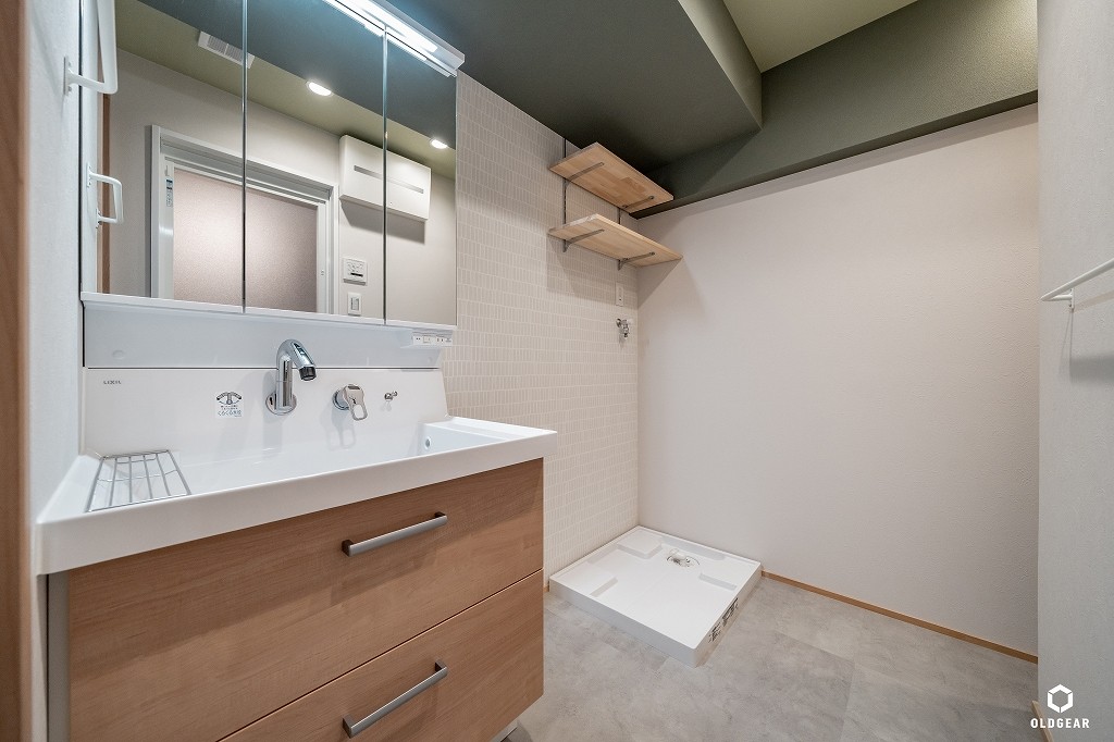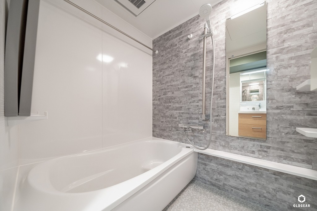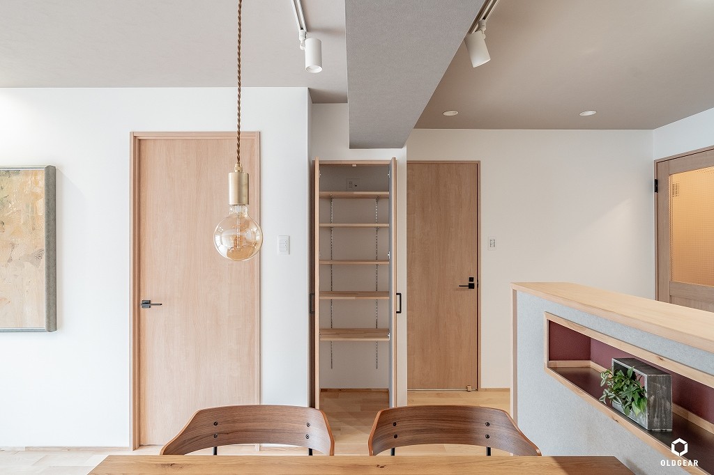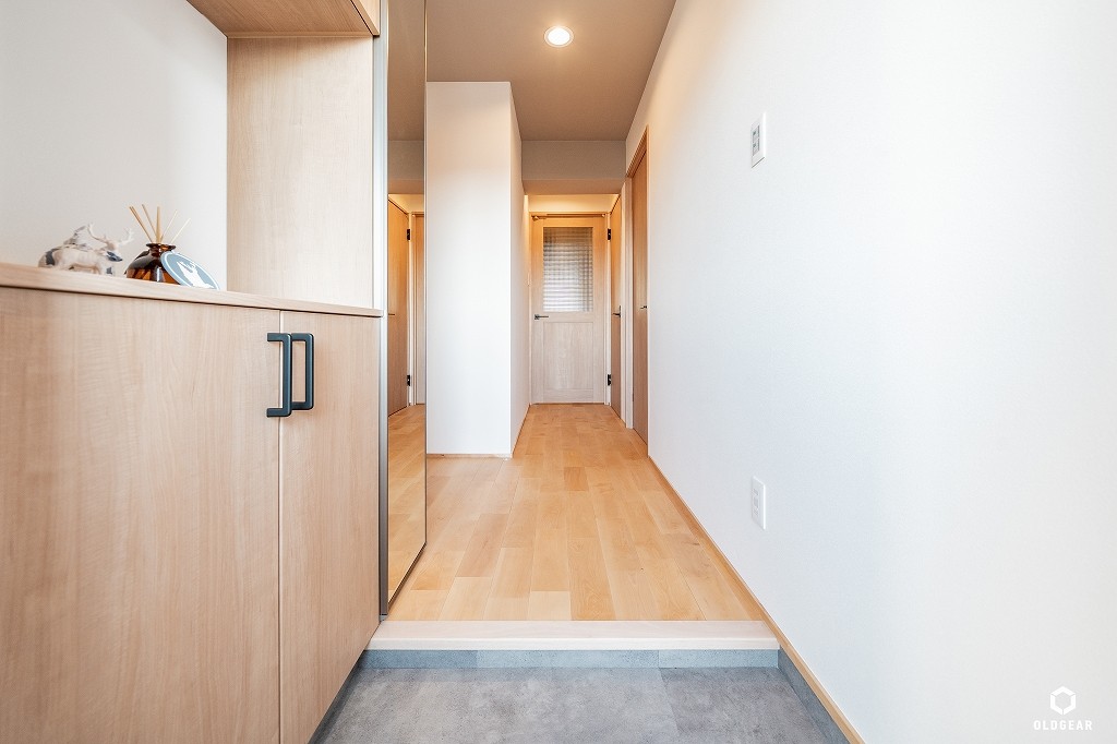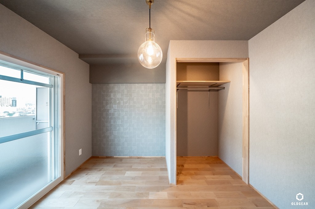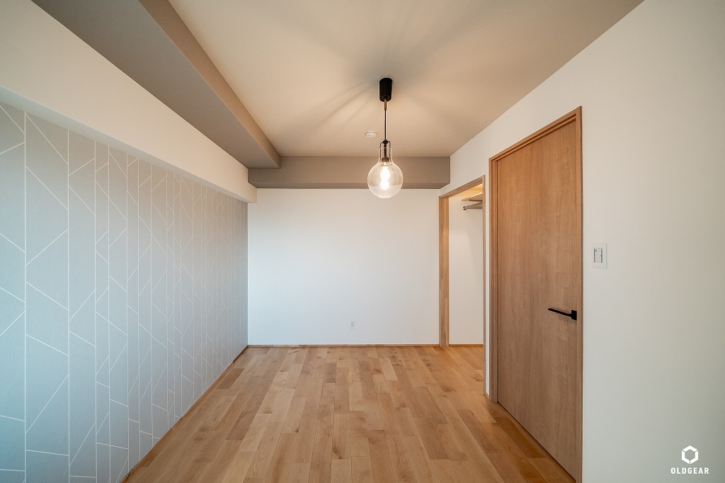 【断熱性能向上】(バルコニー側)インプラスLow-E二重窓+断熱材24K追加・システムキッチン(食洗機・浄水器付・人大・タイル)+ブナ材の造作カウンター・ユニットバス(浴室乾燥暖房機付)・洗面化粧台・トイレ(温水洗浄機付)・壁紙・無垢床(バーチ)・ウッドタイル・LEDダウンライト・建具・給水給湯管更新など