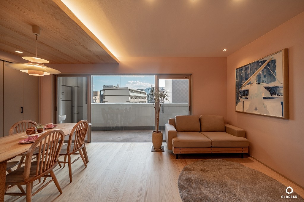 都心のビルの一室でありながら、外から見える灯りまでもお洒落に感じられる住まいです。