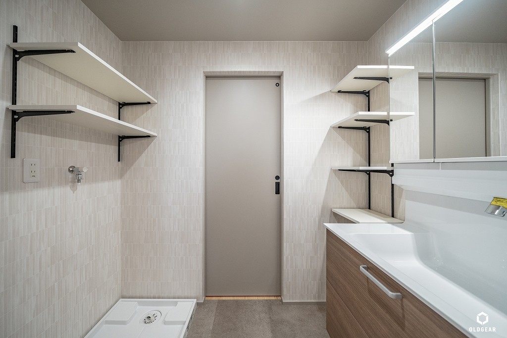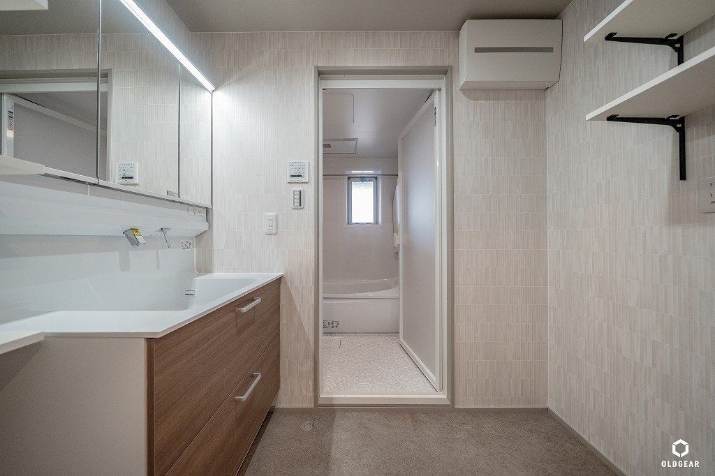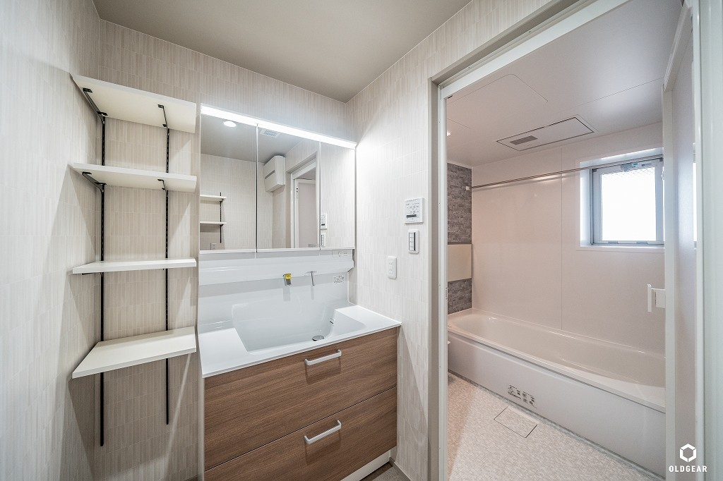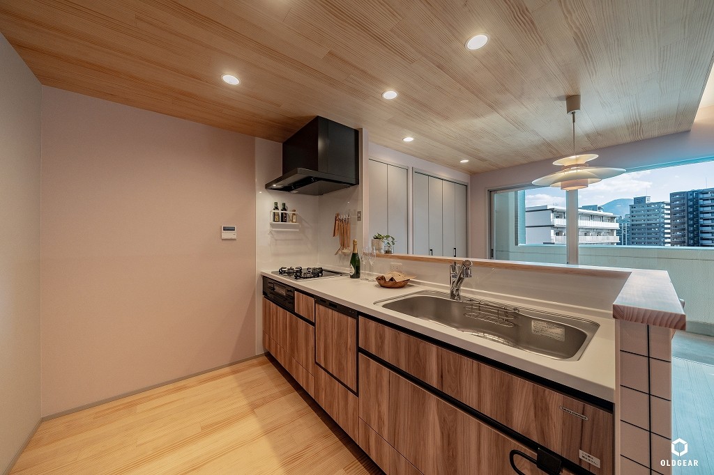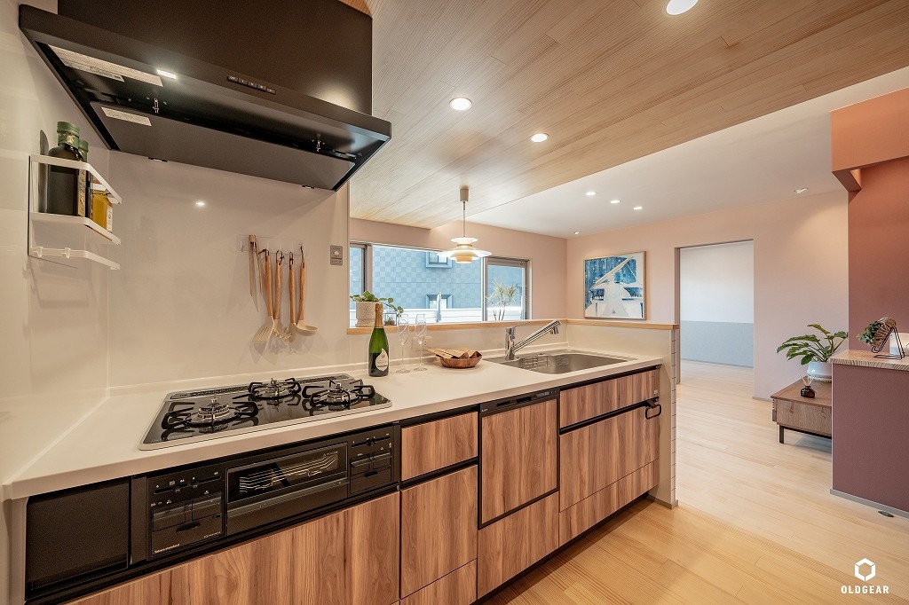 システムキッチン(食洗機・浄水器付・人大)・1坪ユニットバス(浴室乾燥暖房機・追い焚き付)・洗面化粧台・トイレ(温水洗浄機付)・壁紙・無垢床(パイン)・給湯器・LEDダウンライト・建具・造作収納など