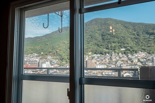 リビングからの景色が足立山を望み、「山の緑」と「空の青」に「白い雲」がアートを描く空間。