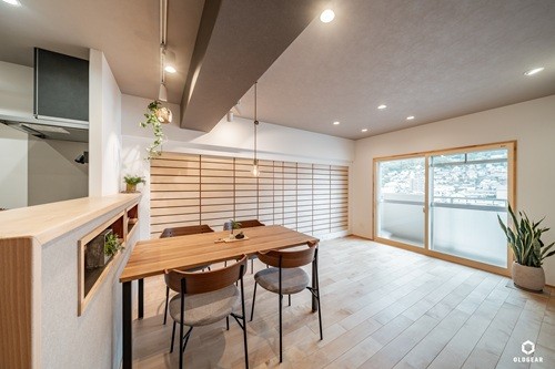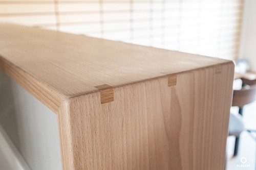 キッチンカウンターもブナ材を使用して職人の手仕事で磨き上げて質感を損なわない拘りのガラスコーティングに。