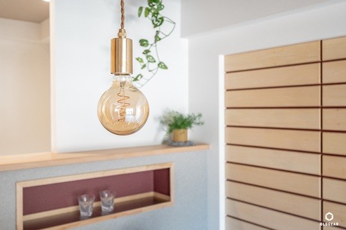 ウッドパネルの質感が損なわれない様に塗ったか塗ってないか判らないオイルを塗り1枚ずつ丁寧に仕上げて施工。
