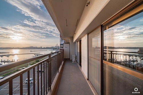 窓際にベッドを置き横になりながら海が見える贅沢な空間の出来上がりです。