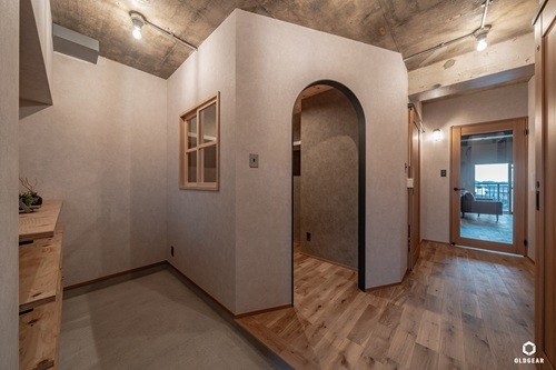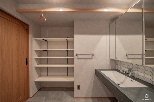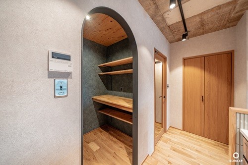 玄関には海が近いリゾート地なので自転車を室内に収納できる様に「土間」を設け、WICも土間を上がってすぐに配置。