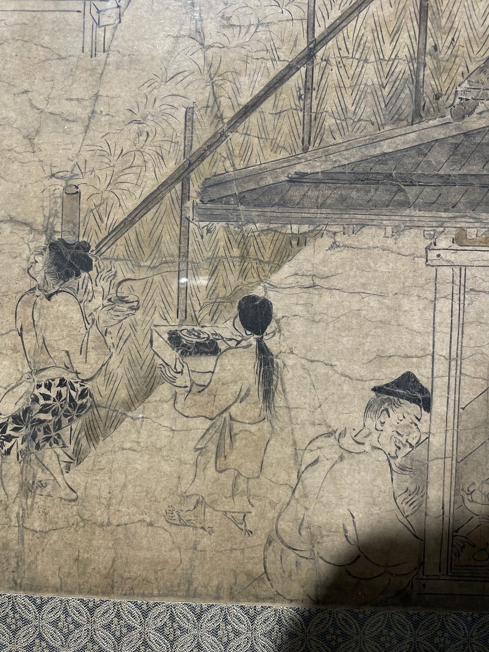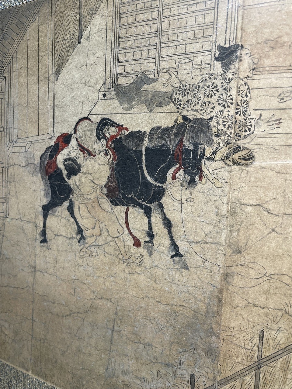 原本(平安時代)の絵巻が残っていることもすごいのですが、この国宝現状模写の凄いところは経年劣化をそのまま写しとる、まさに現状を模写するところだと思います。国宝は年間公開日数や展示照度などが厳しく制限されており一般にみられる機会が極端に少なく、模写したものが出来ることで公開されやすく、また海外展示も可能になります。