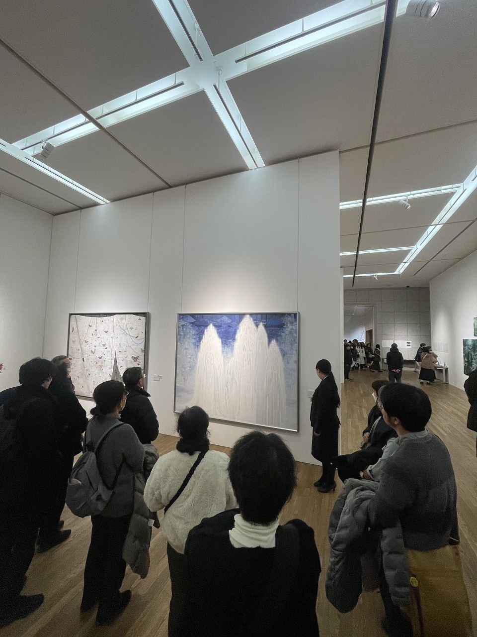 しかも150号(1号は約葉書サイズ)という背丈オーバーのどデカい卒業制作と同時進行で行う模写事業は苦行の極みのように素人考えでは思えますが、描いている当事者たちは国宝模写事業の技法や経験が修了制作や日々の制作に活かされたと熱く語っていました。その魂が宿った修了制作品は「美しい」という私の拙い言葉では言い表しきれない大作ばかりでした。
