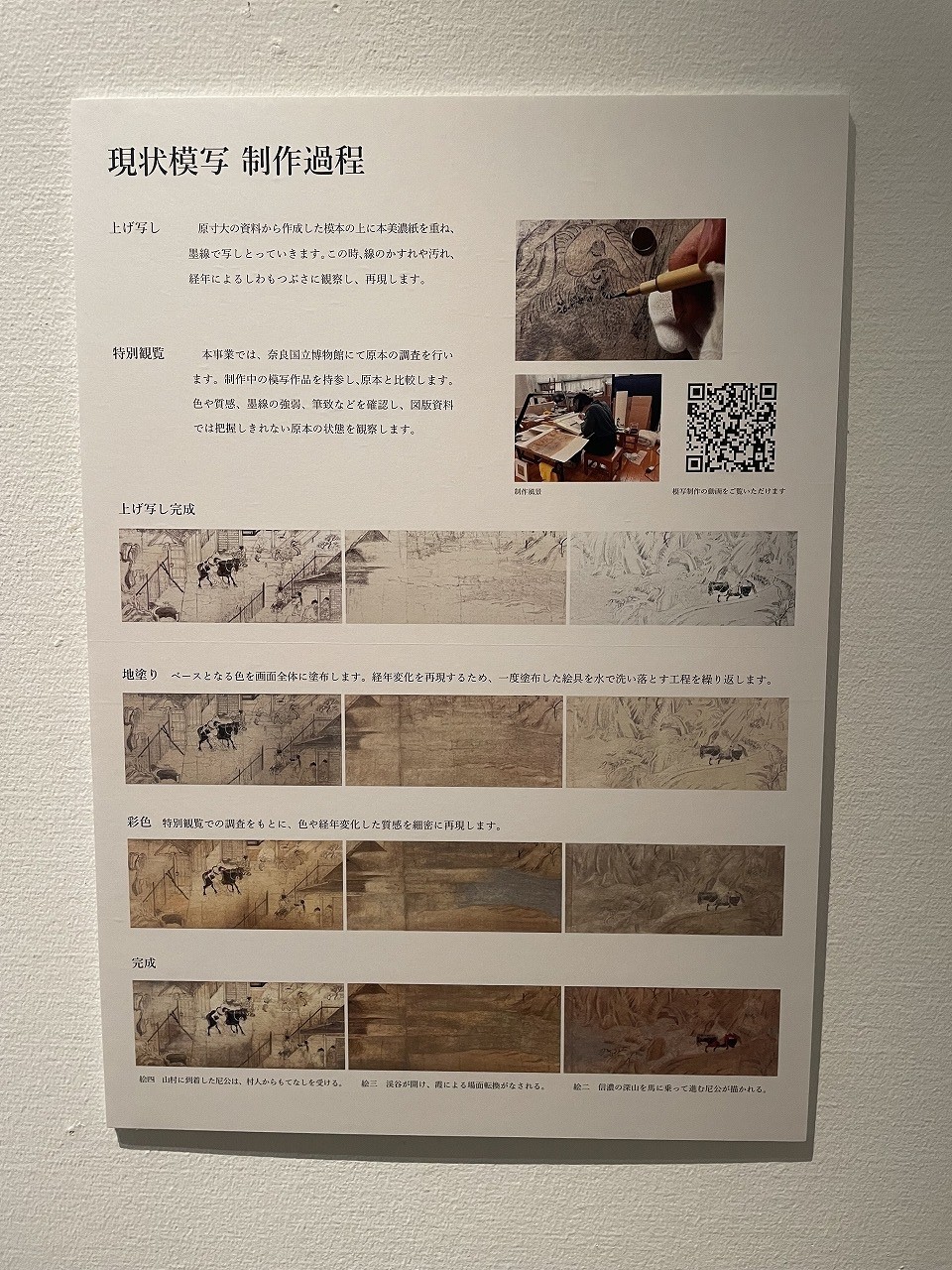 描かれた当時のものに限りなく近い岩絵具や道具を使って巻物のシワやシミや色褪せなどまで原本と寸分違わぬように写し上げていき、原本焼失や劣化のリスクに備えて世界に1つのvery very importantなスペアが出来るというスペシャルプロジェクトは応援せずにはいられません。