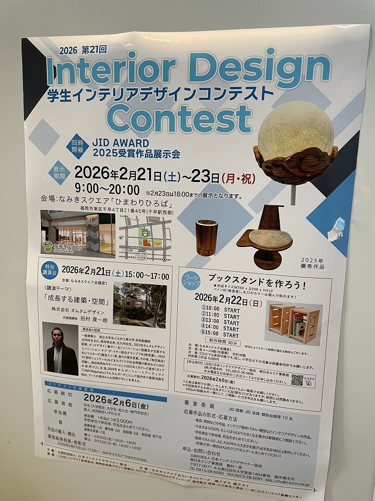 わたくし杉が所属するJID(公益社団法人 日本インテリアデザイナー協会)南日本エリアが主催の「第21回 学生インテリアデザインコンテスト」が先日福岡市東区なみきスクエアにて行われました。
