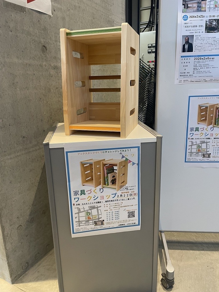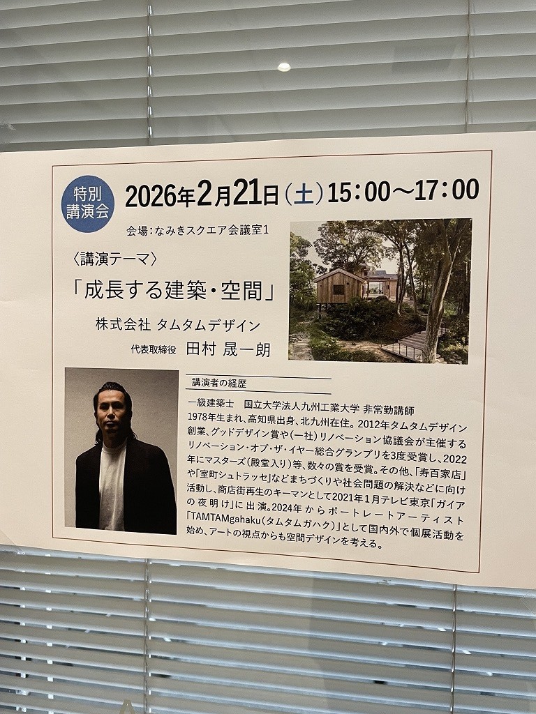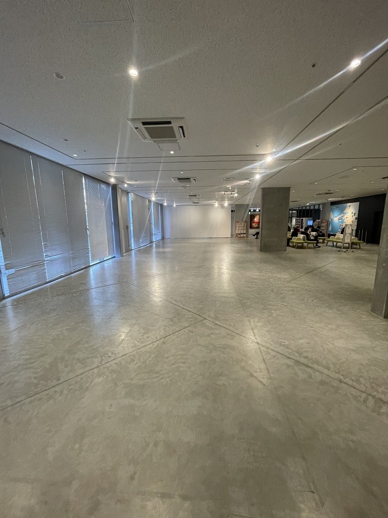 会場の「なみきスクエア」は吹き抜けやフロア移動の視線の抜け、躯体の見せ方、空調設備など建築空間としても素敵な場所で、千早駅前の立地ながらゆとりの駐車場や国道3号線までのアクセス、図書館やパン屋、学習スペースと行政サービス一体になった利便性など会場としてとても素晴らしい空間です。