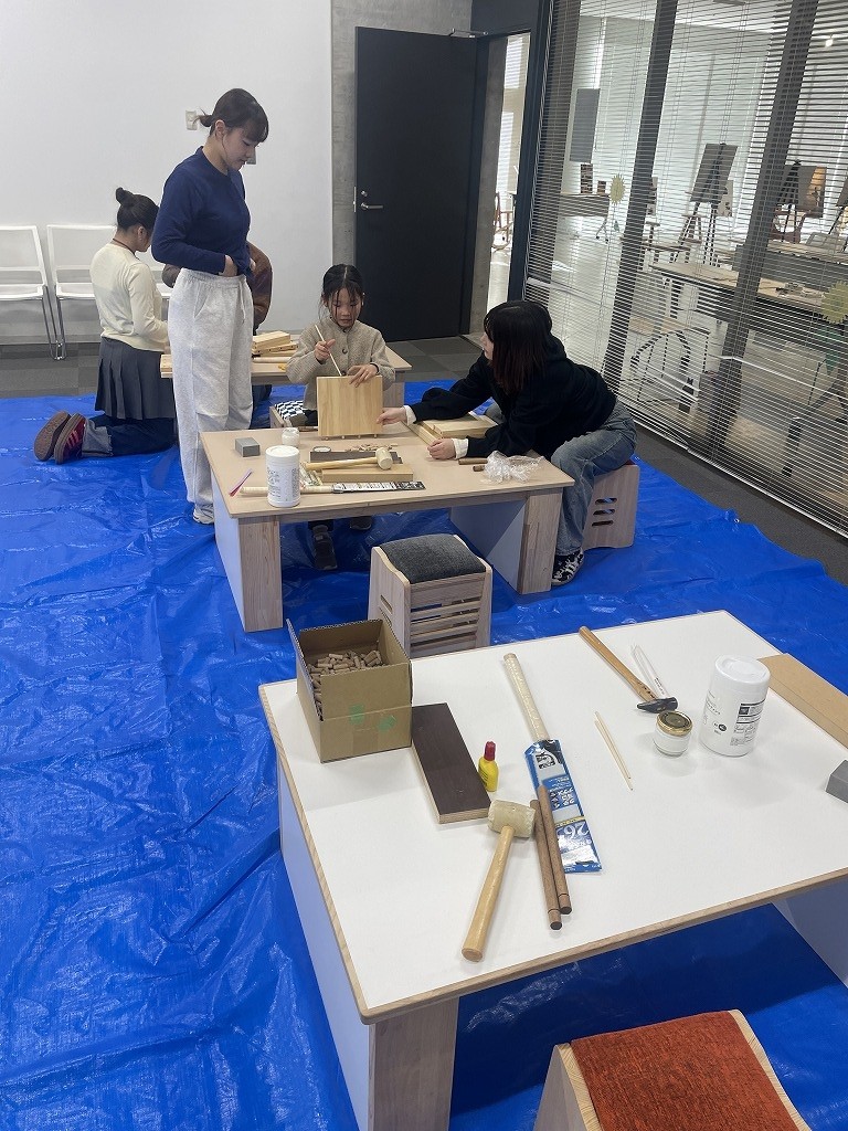 家具の産地「大川」で工房を営むJIDメンバーの協力のもと、材料費相当の参加費で楽しく大人も子供も家具づくりが出来ました。